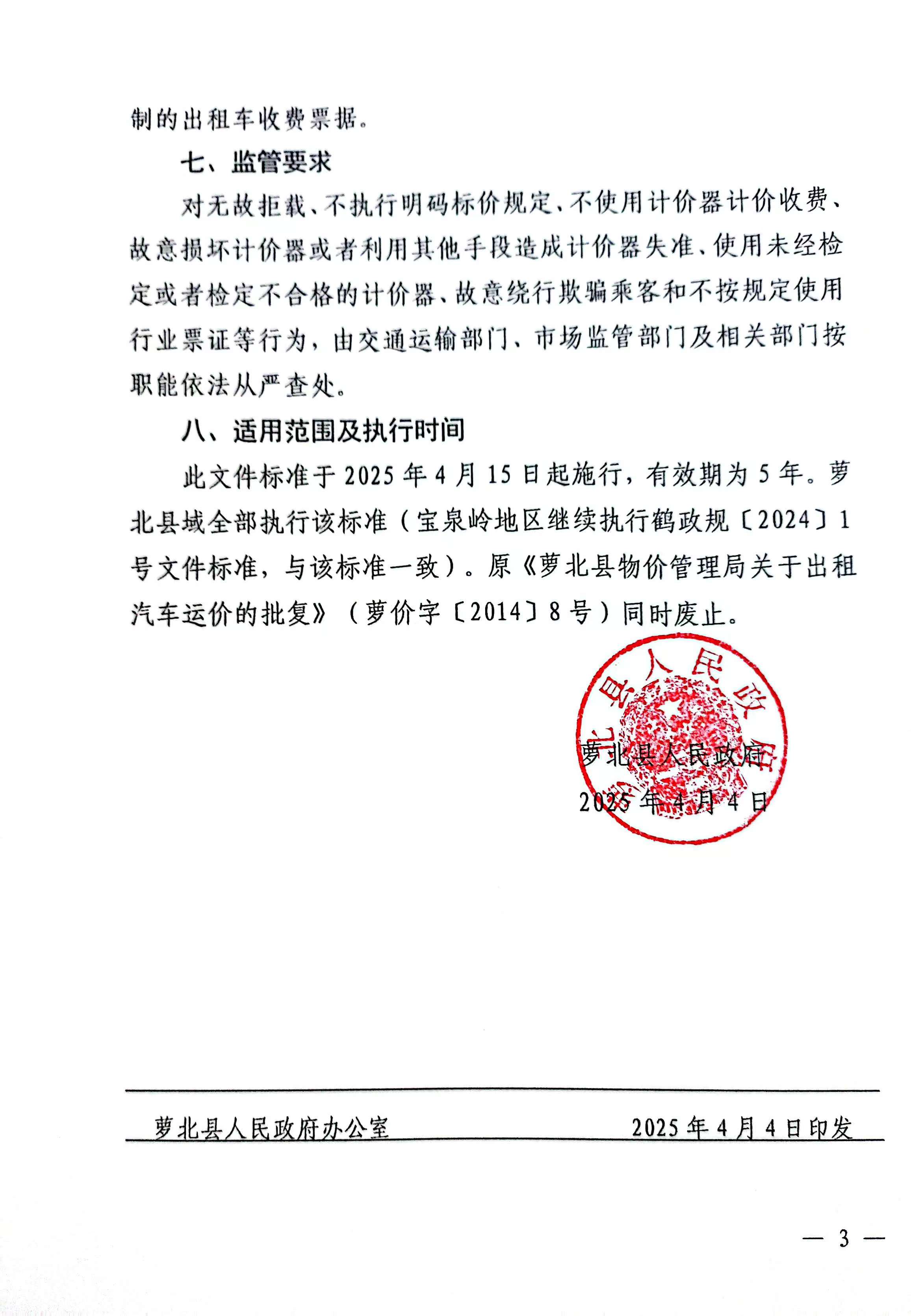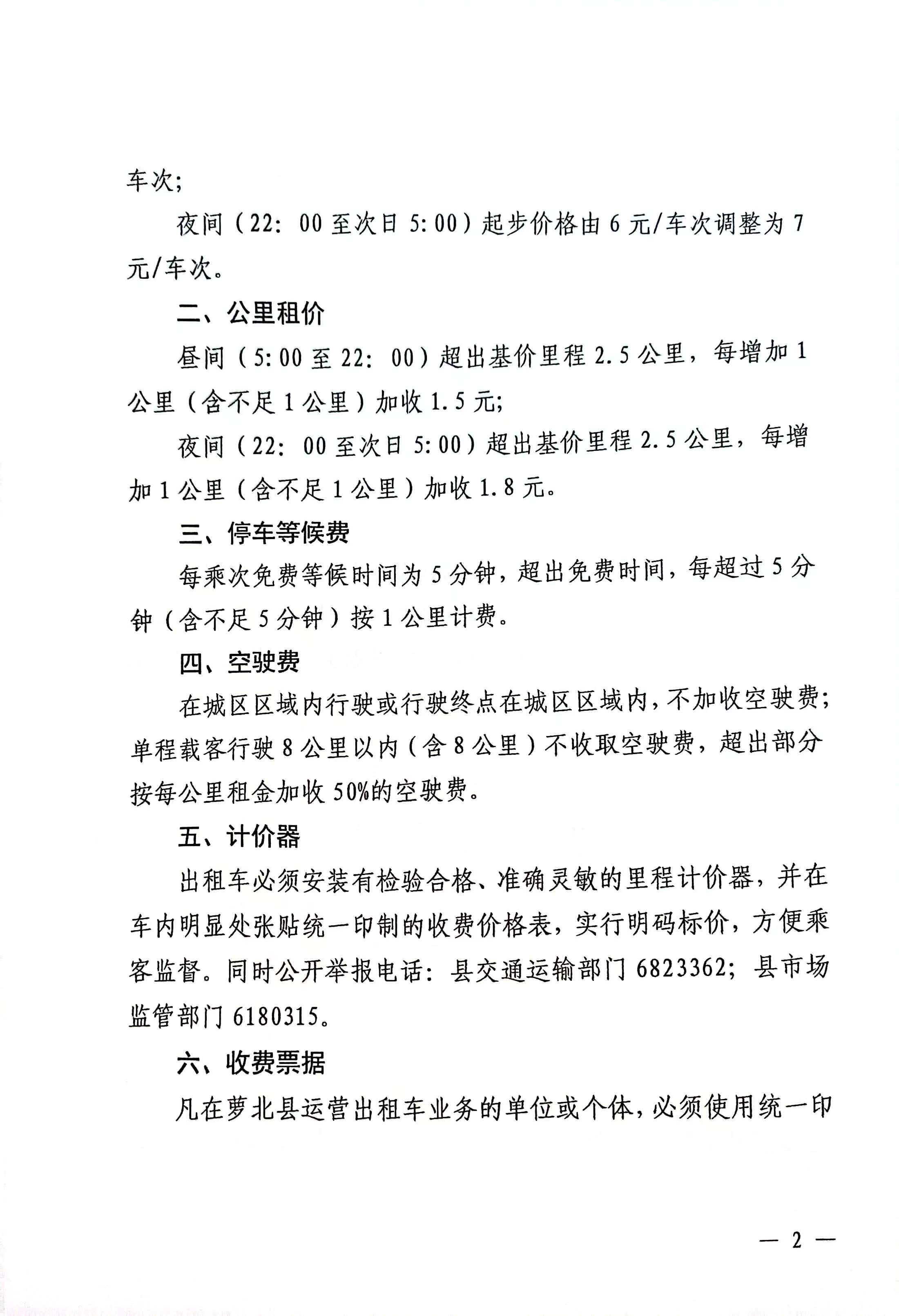 萝北县人民政府关于印发萝北县客运出租车运价的通知